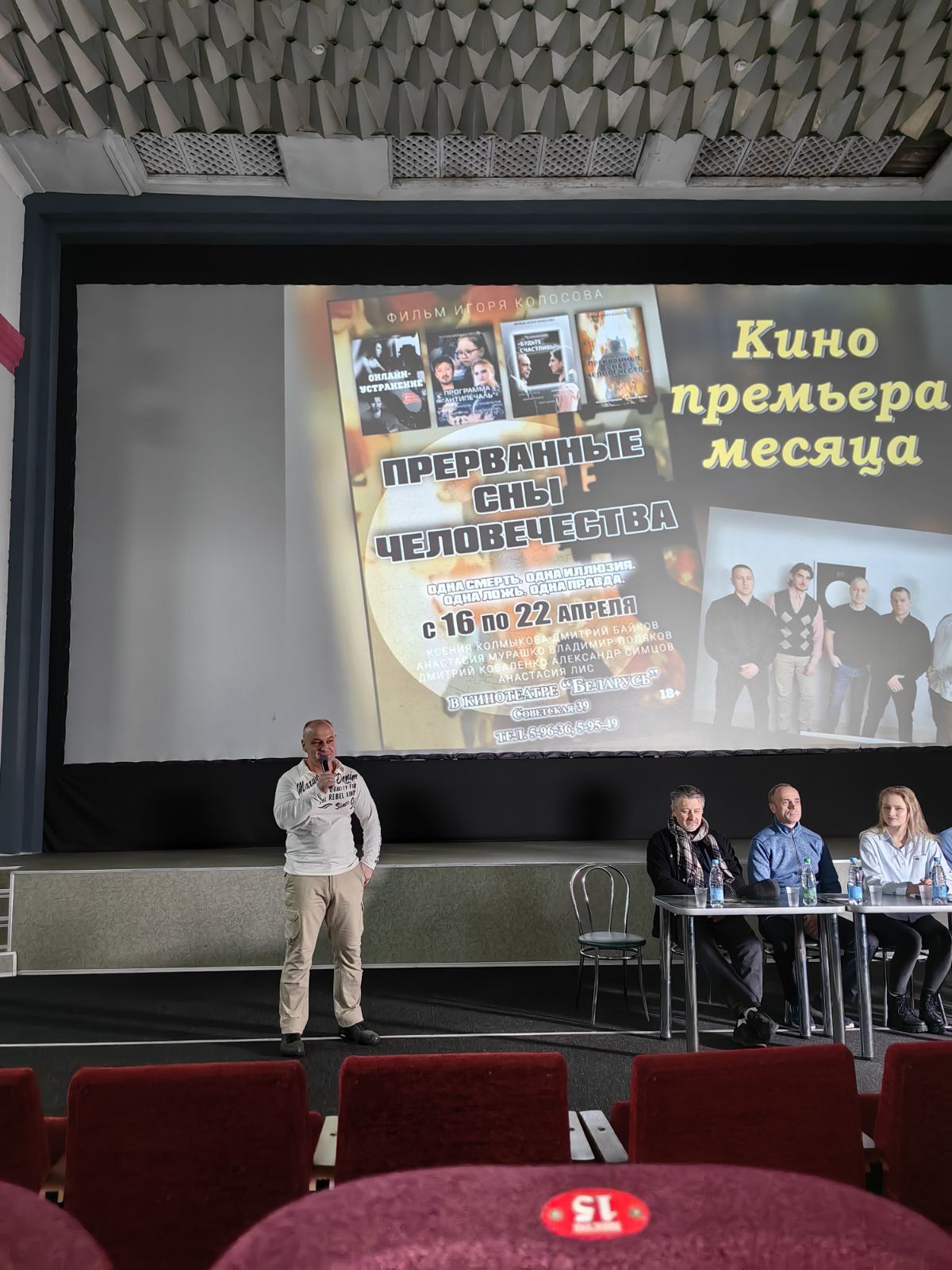 В кинотеатре "Беларусь" Речицкого филиала КУП «Гомелькиновидеопрокат» состоялась премьера белорусского фантастического триллера "Прерванные сны человечества"